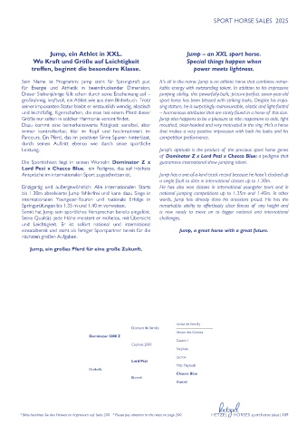 * Bitte beachten Sie den Hinweis im Impressum auf Seite 200 * Please pay attention to the notes on page 200 HETZEL HORSES sport horse sales | 109