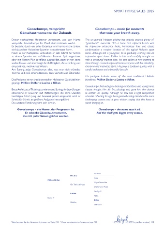 * Bitte beachten Sie den Hinweis im Impressum auf Seite 200 * Please pay attention to the notes on page 200 HETZEL HORSES sport horse sales | 111