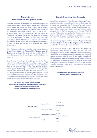 * Bitte beachten Sie den Hinweis im Impressum auf Seite 200 * Please pay attention to the notes on page 200 HETZEL HORSES sport horse sales | 113