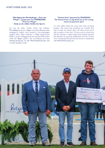 Würdigung der Pferdepfleger, „Preis der “Grooms Prize” sponsored by FRANKONIA