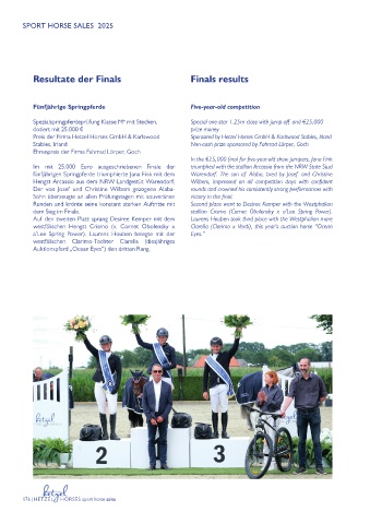 fünfjährigen Springpferde triumphierte Jana Fink mit dem Warendorf. The son of Alaba, bred by Josef and Christine