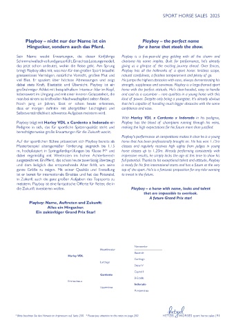 * Bitte beachten Sie den Hinweis im Impressum auf Seite 200 * Please pay attention to the notes on page 200 HETZEL HORSES sport horse sales | 91